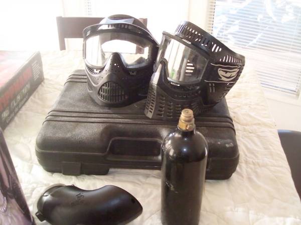 Here's a good buy on 2 Paintball markers I bought new years ago for my sons that only used them a few times. So everything is still like new. The Tippmann 98 Custom also comes with a extra long custom barrel. The other Paintball gun is a Raider with a hardshell case. One of the Paintball hoppers is battery operated. Never used it. Everything for $200 total. Has Co2 tanks, Hoppers, etc. $200.